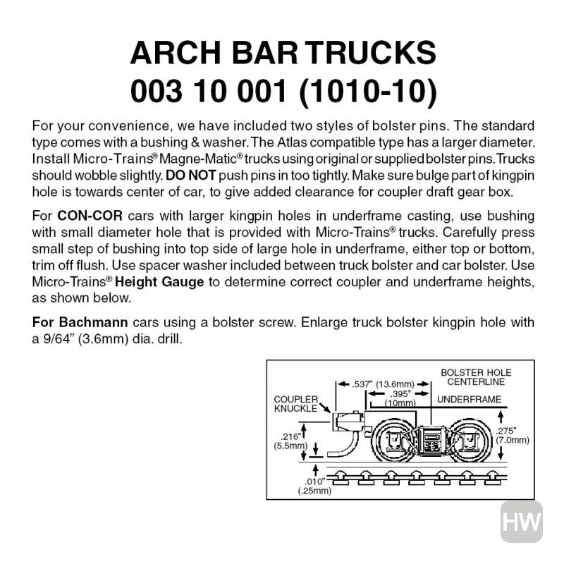 Arch Bar Trucks w/ short ext. couplers 10 pr (1010-10)