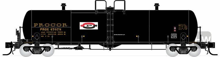N Procor 20K gal Tank Car: PROX As delivered Split P Logo – Single Car