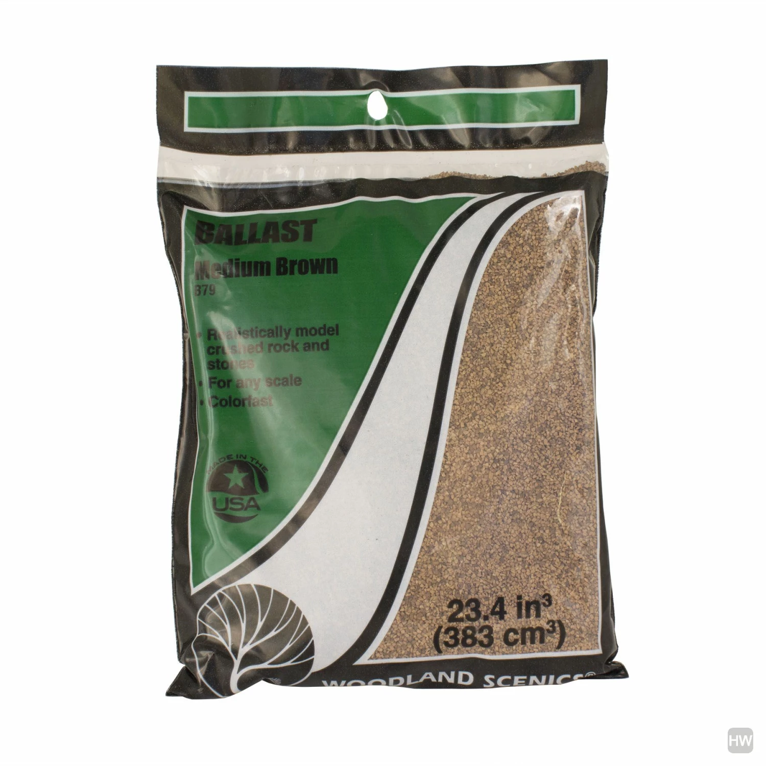 Realistically model railroad track, crushed rock and stones. Easy to use and colorfast. For any scale.