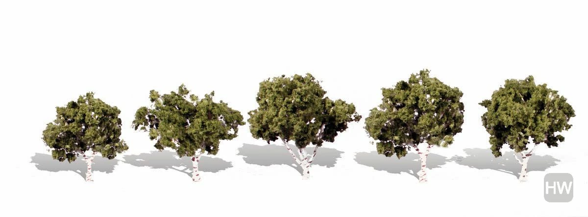 Finely detailed, painted, flexible trunks and foliage in a variety of natural contrasts and highlights. Use combinations of types and sizes throughout your layout for superior realism. Trees have planting pin and optional detachable base for temporary placement.
