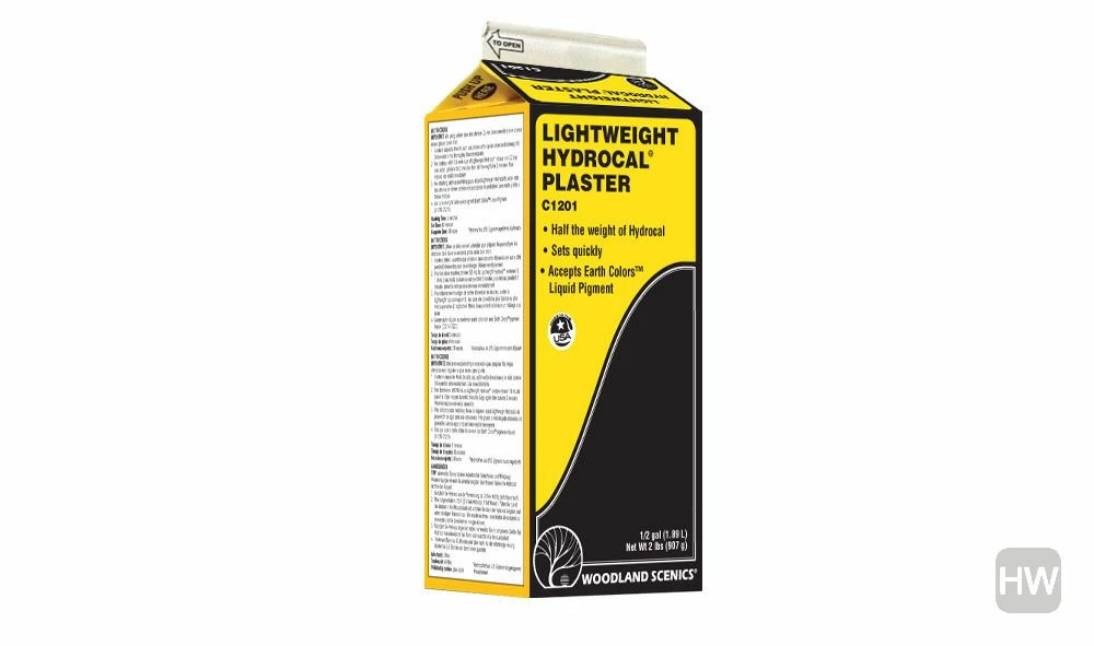 Lightweight Hydrocal Plaster is specially formulated for terrain model builders. At half the weight of Hydrocal Plaster, it goes twice as far.