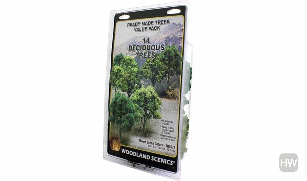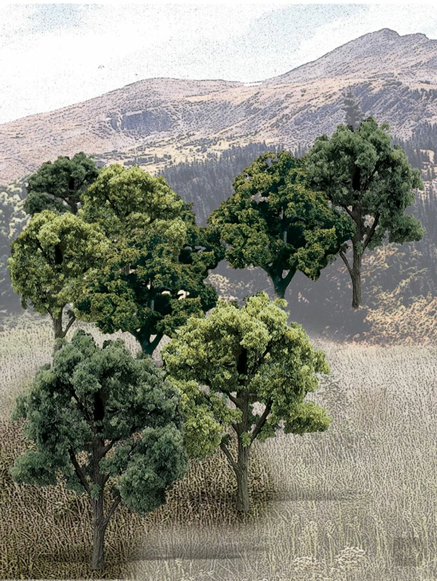 The best value in a ready-made tree and the quickest way to add trees to a layout. Trees have planting pin and optional, detachable base for temporary placement.