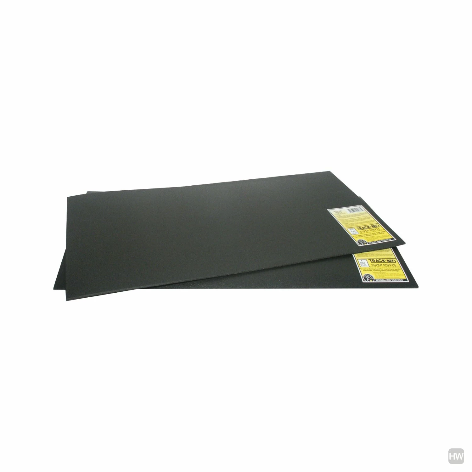 Super Sheets are the perfect underlayment for multi-track yards, switches, loading areas and sidings. They align well with cork or Homasote. Track-Bed deadens sound, requires no pre-soaking like cork, remains flexible and will not dry out or become brittle.