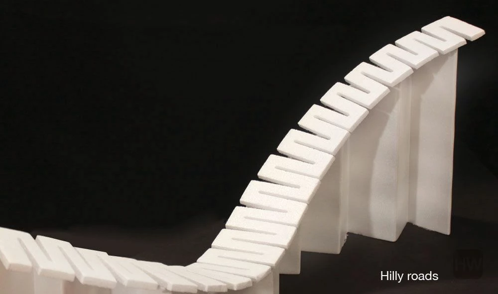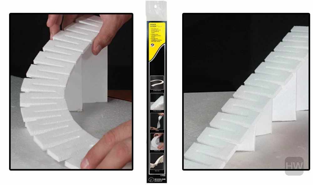 Use Road Riser to establish an elevated road base and instantly set a flat surface for your roads or highways. Road Riser flexibility allows for modeling winding and hilly roads quickly and easily. Aligns easily with 1/4″ Modeling Sheet or set on top of 2″ Support Panels.