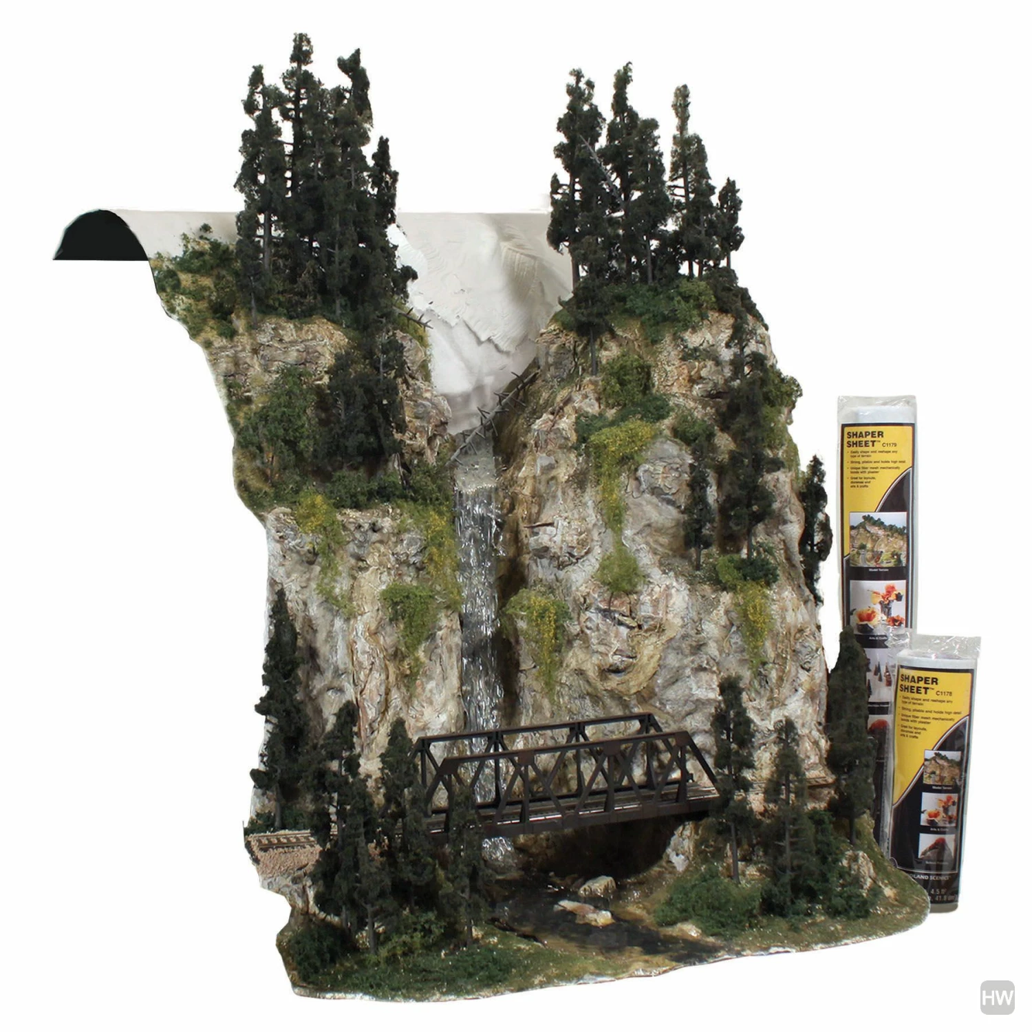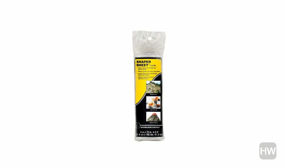 Use this unique material to model all types of terrain. The strong, pliable sheet can be shaped and reshaped to create any level of detail, and it holds its form without any understructure. This material is formulated to mechanically bond with the plaster to create a thin, hard shell ready for landscaping. Ideal for layouts, backdrops, dioramas, displays and arts & crafts.