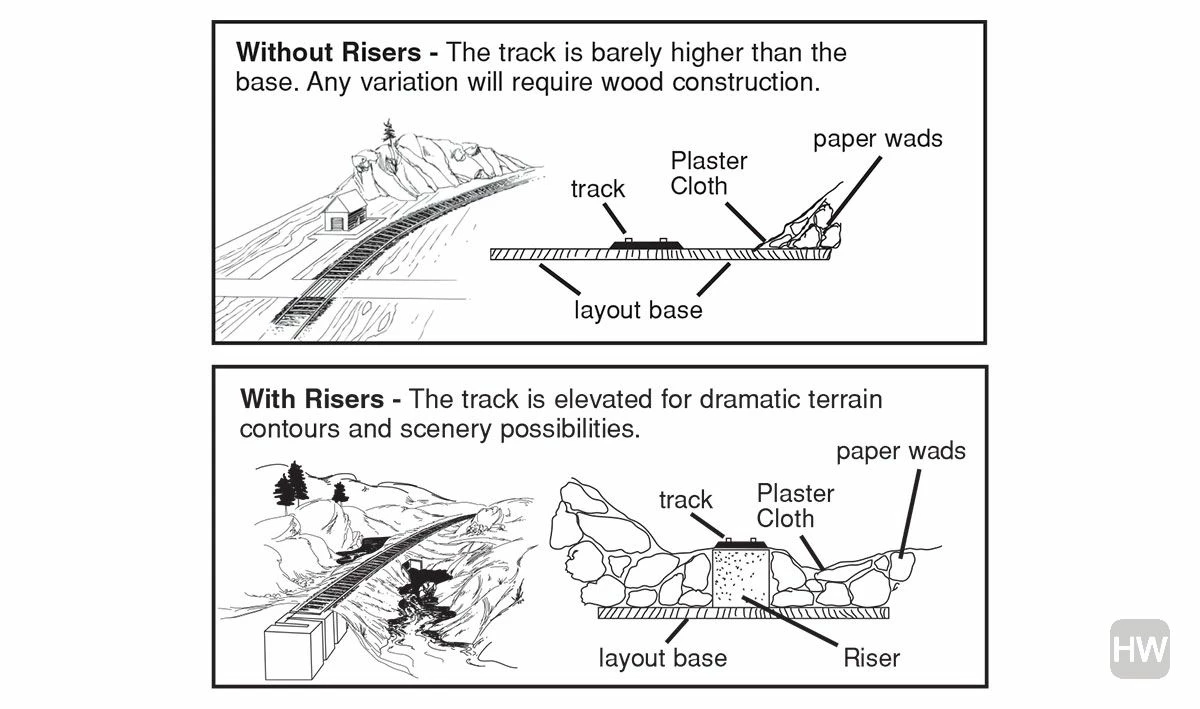 Risers are generally used with Incline/Decline Starters to create varying grades on your layout. Risers are easily flexed to form curves and work on plywood or foam bases. To install, pin in place with Foam Nails and attach with Foam Tackâ„¢ Glue or Low Temp Foam Glue Gun and Glue Sticks.